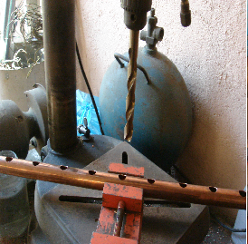 En los extremos cuyo primer agujero está a 3.5cm de la orilla soldamos los tapones y en el otro extremo soldamos la reducción campana con la llave preparadas anteriormente (ver herramientas en la sección anterior).