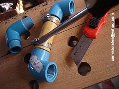 12.- enroscar los codos de modo que queden como en el diagrama y unirlos con los tubos de manguera y las abrazaderas.