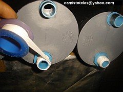 2. Con pegamento para CPVC pegar las dos tapas de cada tubo.