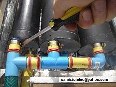 6.- Pegar los conectores en los agujeros hechos anteriormente con pegamento para CPVC.