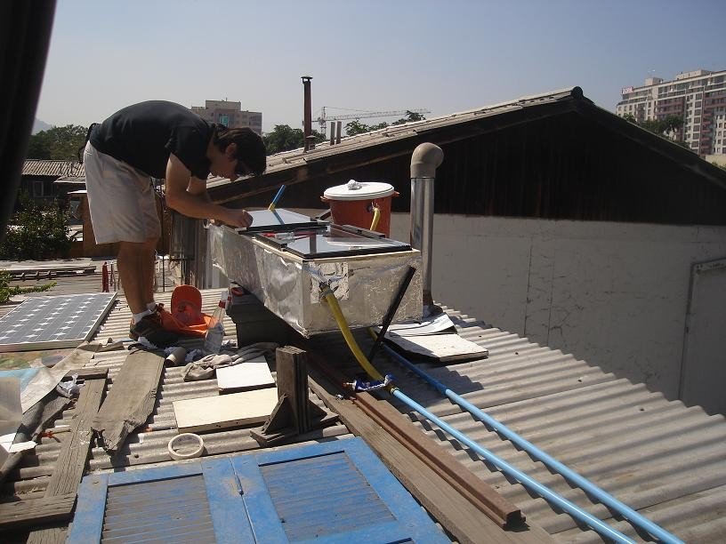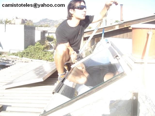 La colocación del doble vidrio es parte del trabajo que realizó Camilo Rojas C. de Chile para diseñar su calentador solar (versión 5).