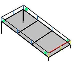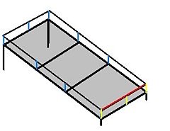 5.- Se solda el marco para el vidrio con el bastidor, se separa por medio de los 7 tramos de solera de 8 cm que se marcan en azúl, los 3 tramos de 6 cm se marcan en amarillo que es donde va el ángulo volteado y que evitará que el agua se acumule.