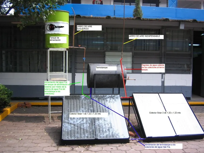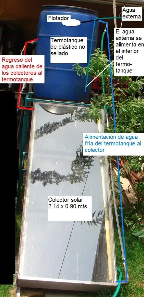 Importante: Dentro del calentador (en especial en el colector) para que circule el agua por convección (y que no se requiera una bomba para forzarla) es muy importante que se permita la salida de las burbujas, además de que si se calienta mucho el agua es importante permitir los cambios de volumen en el agua para que no aumente la presión interna.