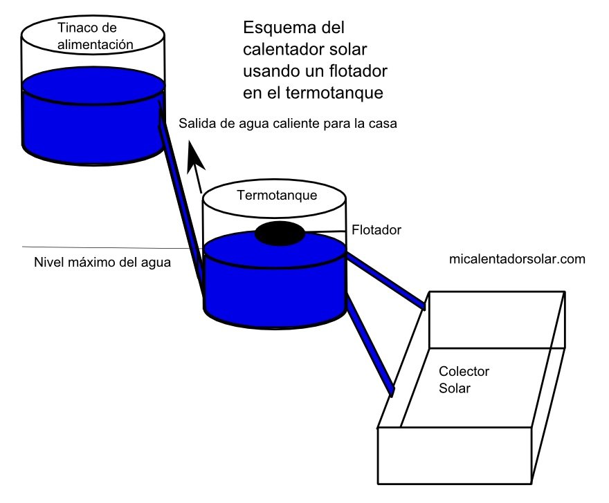 Si lo observamos funciona como un gran vaso comunicante. Una vez que entra el agua ahí se queda, como en el colector se calienta y el agua caliente es más ligera que la ligera entonces sube, y así es como circula en el termotanque, por ello es importante que el agua fría llegue al fondo del termotanque (para que no enfríe el agua de la superficie del mismo).