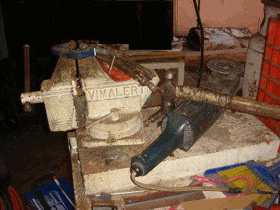 Foto de tornillo de banco y alguna herramienta.