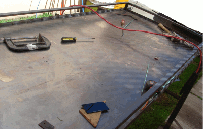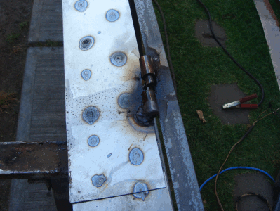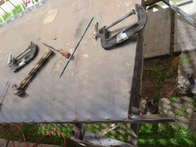 Se solda la lámina, en esta foto se muestra soldada por fuera de los marcos, pero lo mejor es soldarla por dentro como en la foto segunda foto que está a continuación.