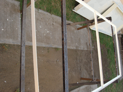 se forma un segundo marco (con tramos de ángulo 2 de 2.105 m y 2 de 0.92) y se une al primer marco soldando en las esqunas ángulos de 5.5cm de largo y dos soleras de 5.5cm a 2/3 de distancia en cada costado largo y 1 a la mitad de cada costado corto.