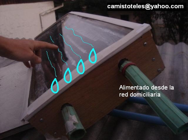 Luego de comprobar que el agua se calienta de manera satisfactoria y más de lo esperado, conecté la entrada de agua de la caja a la red domiciliaria. En la salida de agua de la caja instalé una llave provisoria de paso.